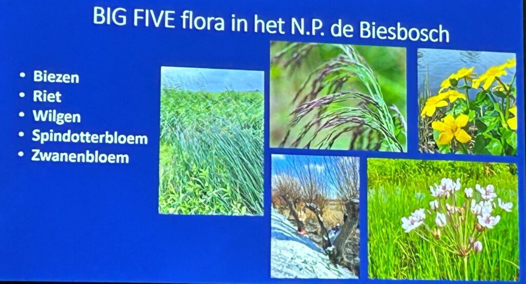 Kortom het was een geslaagde en interessante lezing en er was interactie met het publiek, want er werden tijdens zijn praatje regelmatig vragen gesteld aan Pieter. In zijn nieuwe boek Biesboschflora 2 gaat hij dieper in op de feiten (herkenning, weetjes, geneeskracht en eetbaarheid) en beschrijft hij bovendien vier wandelingen in de Hollandse Biesbosch.