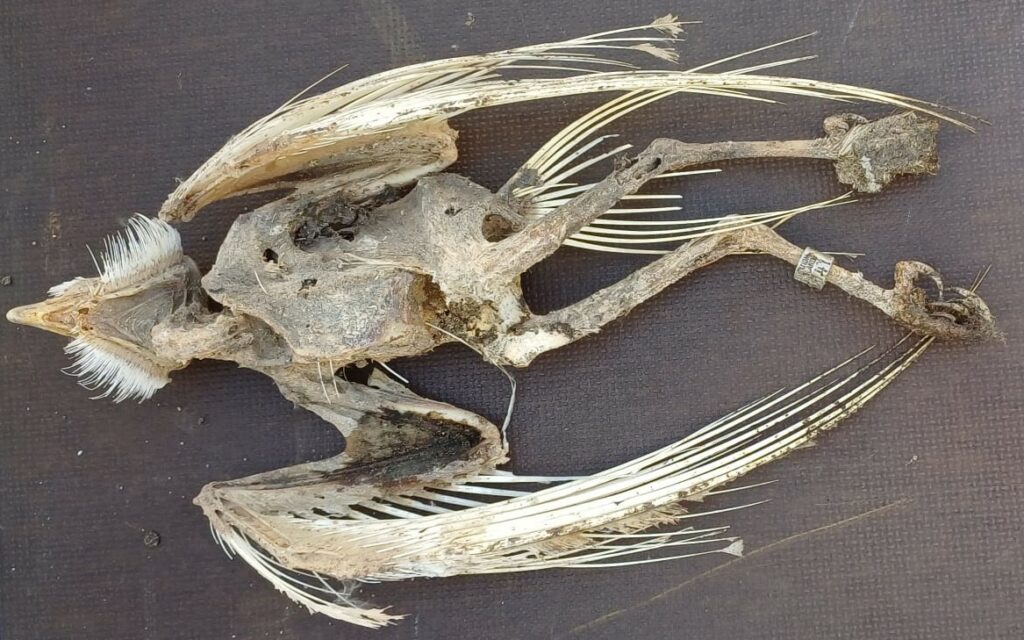 Kerkuil. 5573061 en 063, geringd als pul op 14-8-2019 aan de Heiweg in Oud Alblas en bij schoonmaken kast op 23-6-2023 skelet gevonden. Jongen zijn niet uitgevlogen en dus niet oud geworden.