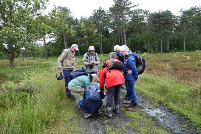 Het strand hebben we niet bereikt omdat het te hard was gaan regenen. We liepen terug door de duinen, heide en dennenbossen en genoten nog van allerlei leuke waarnemingen. Het was jammer van het weer want we hadden gehoopt op meer insecten en vlinders, maar het was toch een hele leuke dag.