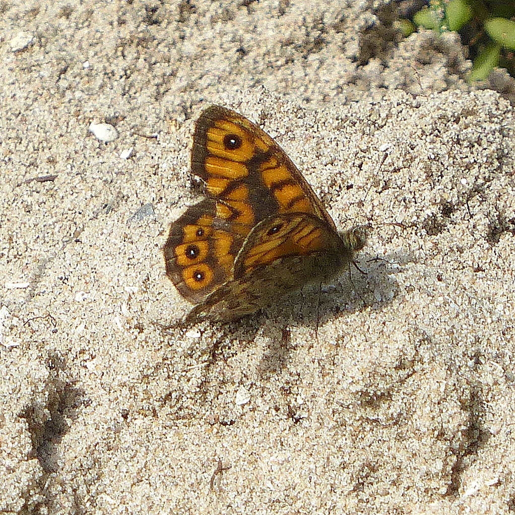 In de erfbeplanting zaten twee landkaartjes van de voorjaarsvorm (vlinders) en die zijn oranje in plaats van zwart. Helaas niet kunnen fotograferen.