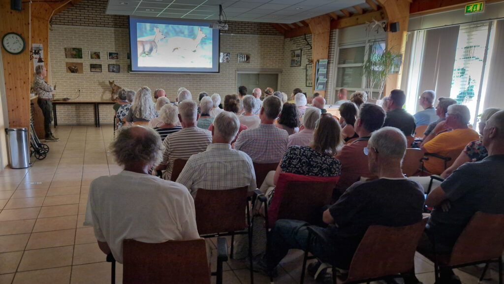 Stijn Philips richtte zich met een videoboodschap tot het aanwezige publiek. Zijn film De Wilde Waard gaat over de Alblasserwaard, gelegen in het zuiden van het Groene Hart. Er leven onder andere heikikkers, bruine kiekendieven, hazen, brandganzen en grutto’s. De film was erg boeiend en er werd ademloos naar gekeken en geluisterd.