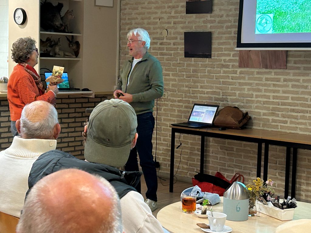 Daarna vertelde Jan Tuin, fotograaf, imker en natuurliefhebber boeiend over zijn passie voor allerlei soorten paddenstoelen. Hij gaat hiervoor meermaals in het Kralingsebos in Rotterdam en in het Doncksebos in Ridderkerk op zijn knieën om de mooiste plaatjes te maken. Hij is bij de Natuurvereniging eiland IJsselmonde lid van zowel de paddenstoelenwerkgroep als de vogelwerkgroep.
