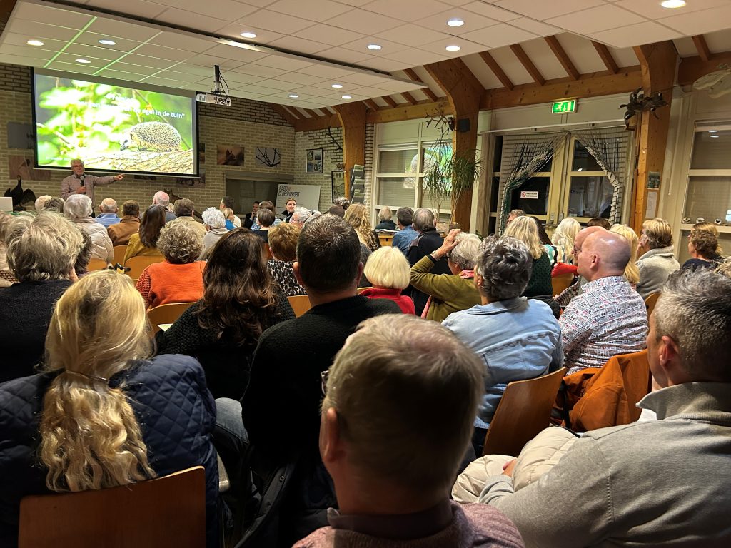 Het was een ongekend grote opkomst op de Egelavond op 30 oktober. De natuurfilmer Stijn Philips vertoonde zijn nieuwe korte film “Het verborgen leven van egels in de tuin“. Anderhalf jaar lang heeft hij egels in een tuin in de Alblasserwaard met veel geduld en passie gevolgd.
