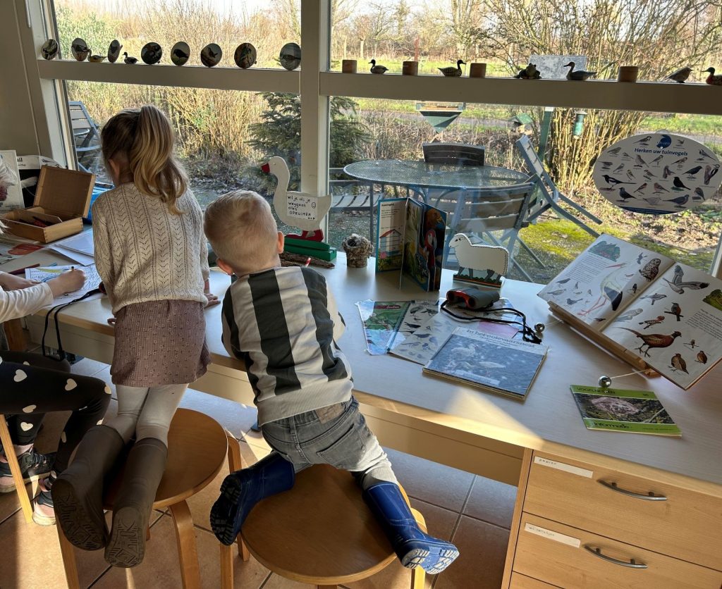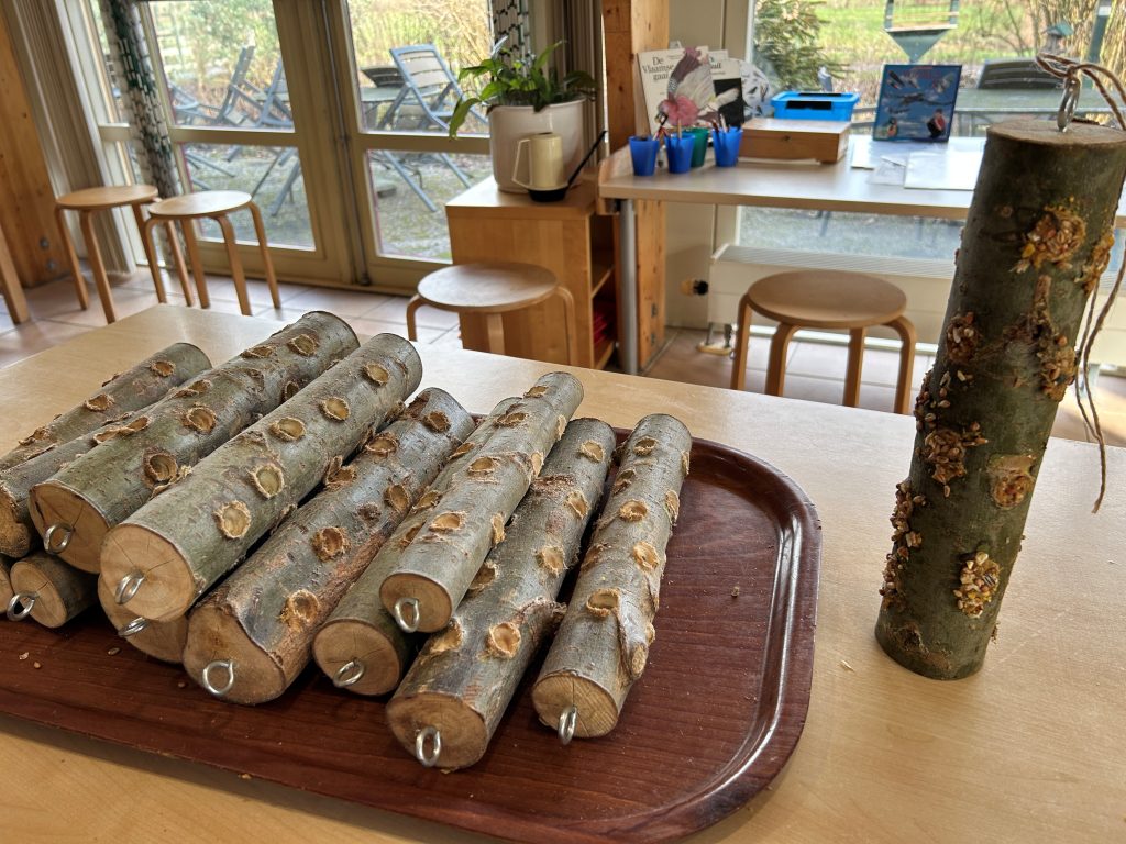 Enkele kinderen waren al vogelaars in de dop. Ze herkenden de vogels meteen. De kinderen kregen een boomstam mee met daarop speciale vogelpindakaas en vogelzaad om thuis op te hangen. Het was een leuke middag met de leergierige kinderen. Ook de ouders deden volop mee.