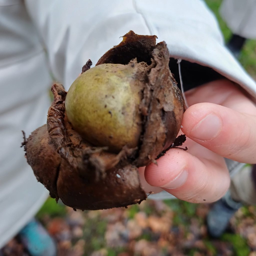 Bij het Stambos aangekomen, konden we genieten van een zee van sneeuwklokjes omlijst door groen bemoste bomen. Er waren ook nog enkele bijzondere vondsten: een gekraagde aardster, een leeggegeten ei (vermoedelijk door een wezel of hermelijn) van een Turkse tortel, keutels en prenten van een ree. Ook de overblijfselen van hoornaar nesten. Zowel van de Europese als de Aziatische hoornaar.
